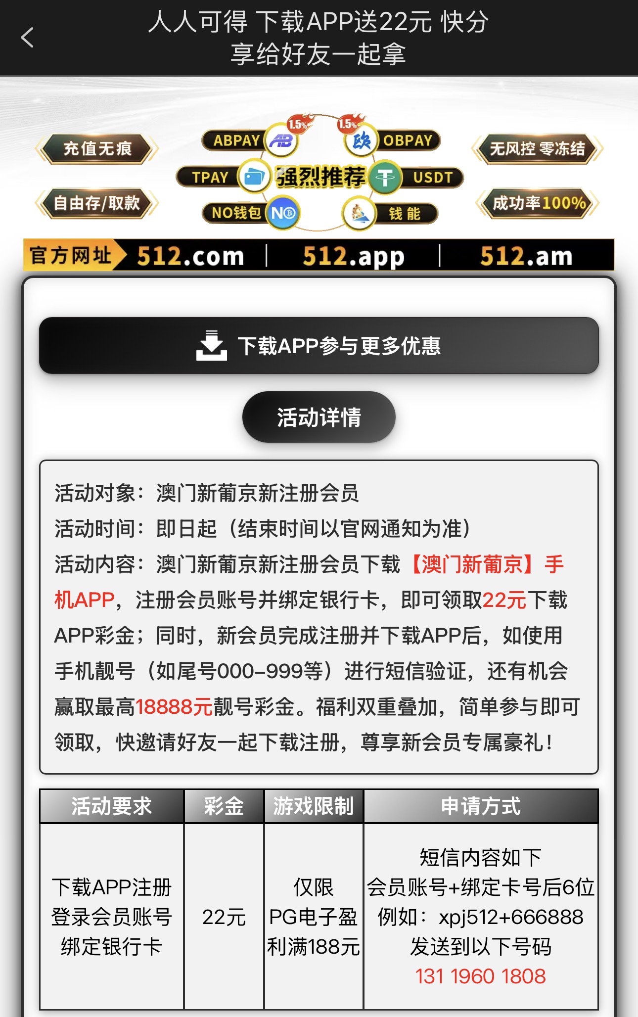 新用户注册绑定手机号钱包下载APP然后看图发送短信自助申请22,彩金只能玩PG电子