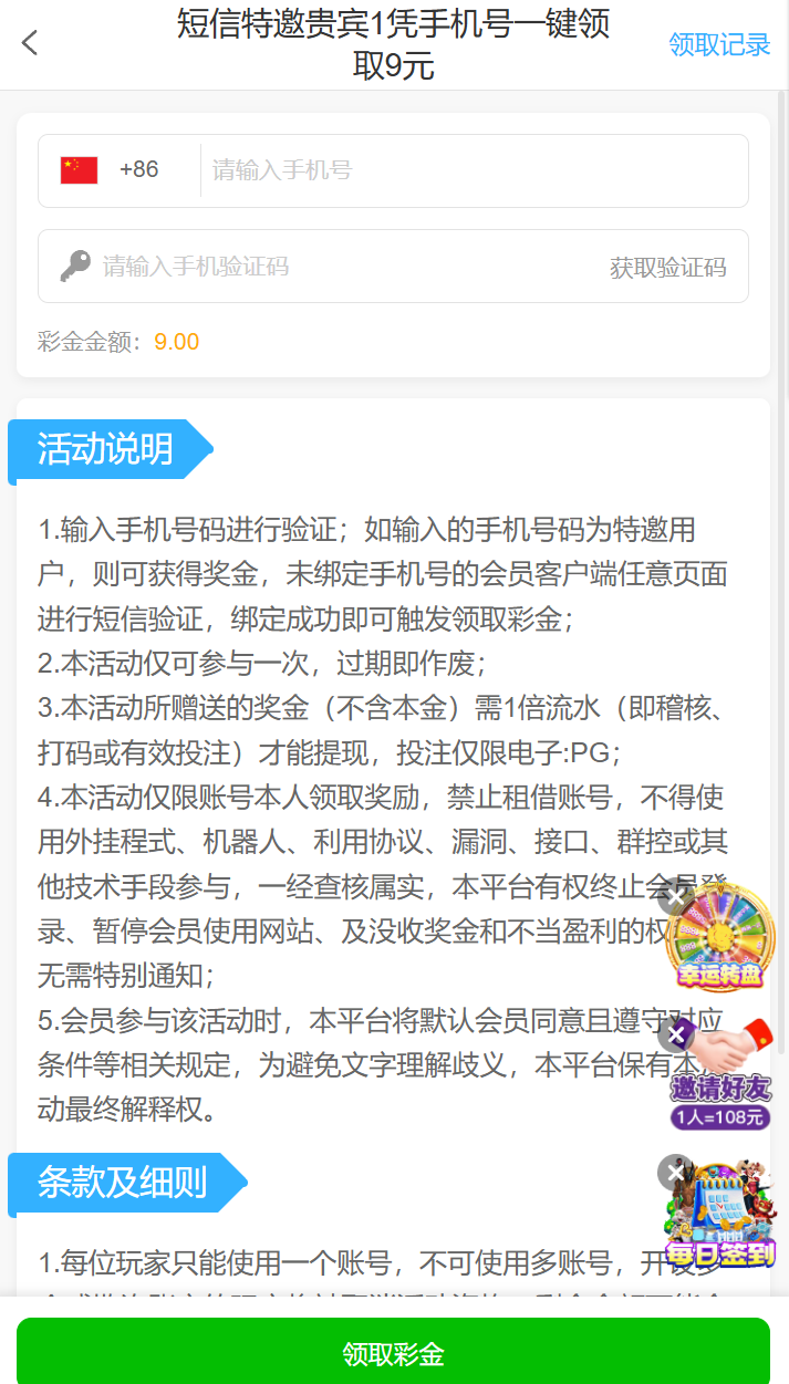 碰瓷特邀,新用户注册绑定手机号优惠大厅点击新人里面自助找到活动入口验证手机号是特邀秒送