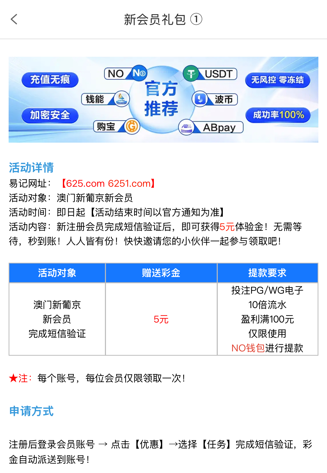 新注册会员完成短信验证后,即可获得5元白菜
