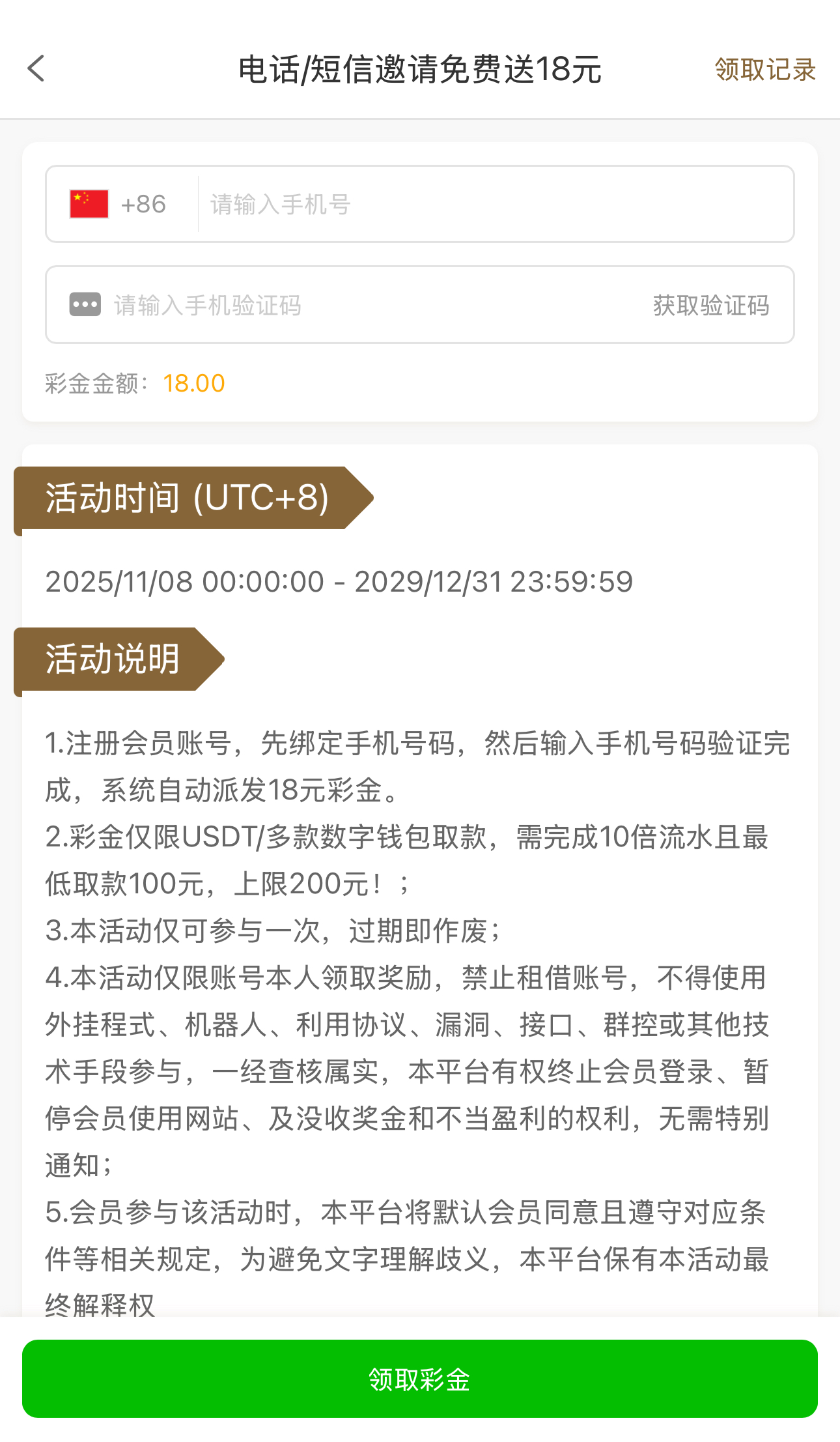 新用户注册绑卡点击优惠大厅里面的电话特邀自助验证手机号是特邀秒送18