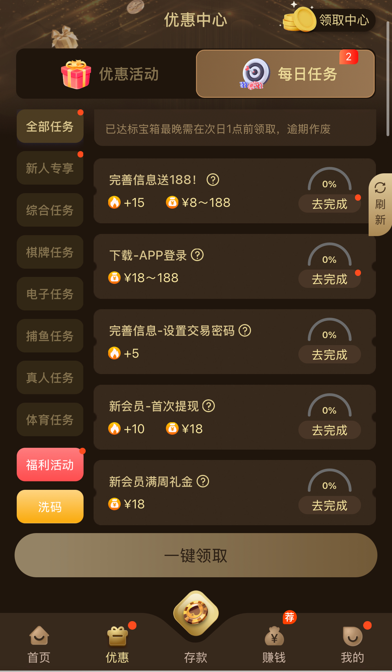 新用户下载app注册绑定好信息任务里面自助领取8彩金
